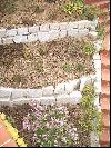 Granit-Mauersteine wurden als Hangabfangung auf Estrich vermörtelt, Bodenverbesserung, Kleingehölz und Stauden Bepflanzung.