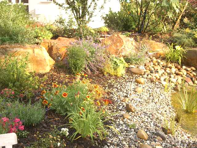 Hausgarten Neuanlage, Teich mit Bachlauf